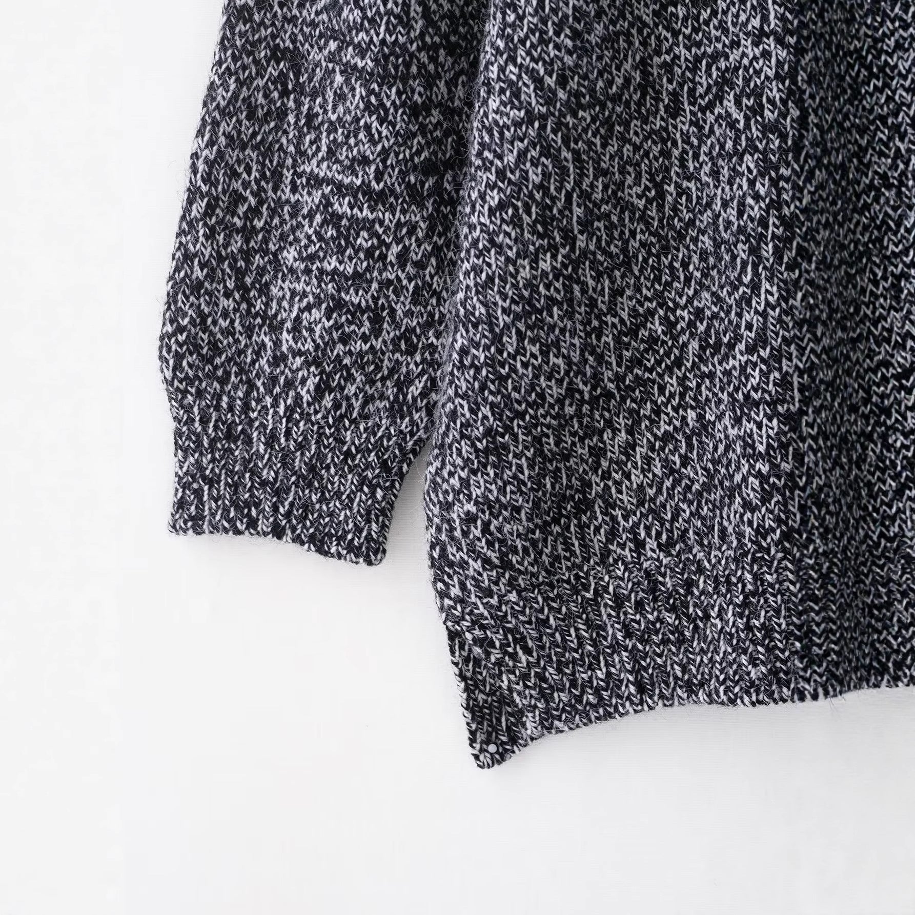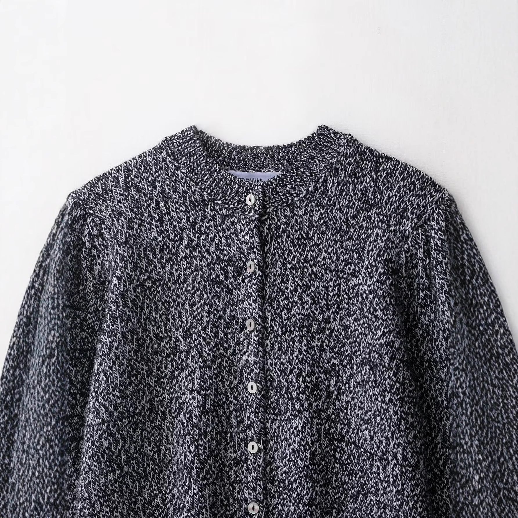 Round neck nine sleeves single breasted solid color knitted sweater for women
